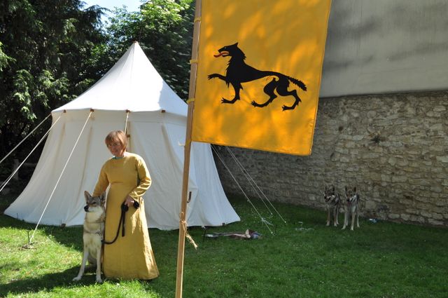 Des loups en chair et en os et le loup héraldique sur notre bannière.
